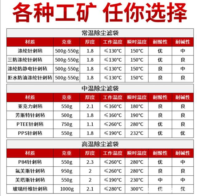 聚酯针刺毡滤袋它具有普通毡滤布的独**性,如空腔大,透气性好,除尘效率高,使用寿命长使用寿命长等优点,其耐温性适中,可立即达到150℃,具有中等耐酸碱性,且它有很好的耐磨性,抗静电聚酯针刺毡袋:在针刺毡复制中混合或熔融导电纤维与导电纤维或导电材料混合 壹号网页版,用于面粉粉尘,化学粉尘,煤粉粉尘等,静电放电。