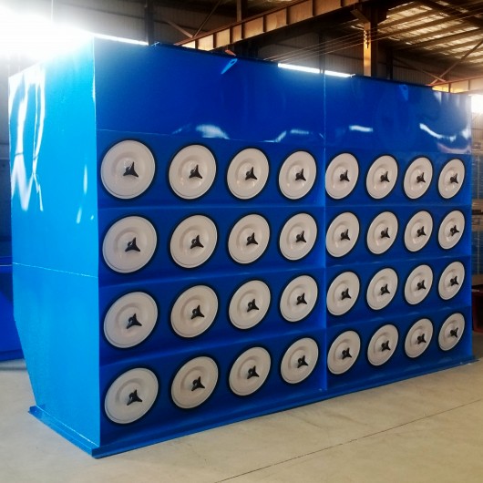盒式壹号网页版的结构由吸风管、排风管、箱体、灰斗、除灰装置、导流装置、气流分流分布板、过滤筒及电气控制装置组成,类似于气柜脉冲袋的除尘结构。
